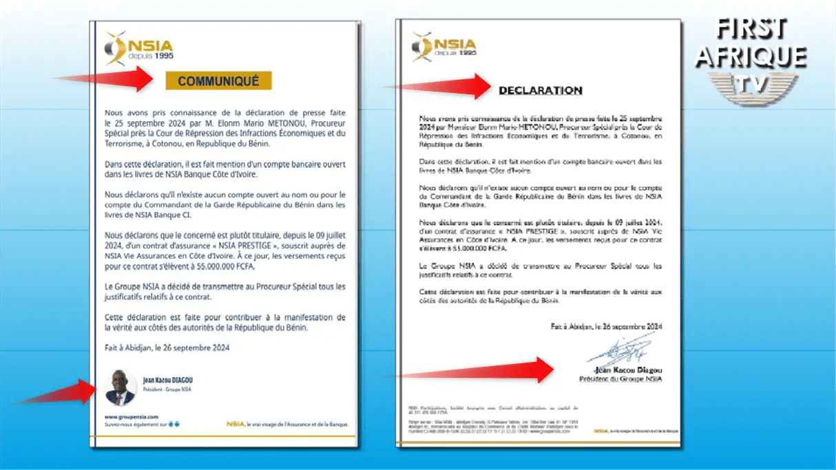 Un communiqué douteux circule actuellement, prétendant démentir l’ouverture d’un compte bancaire au nom du colonel Djimon Dieudonné Tévoédjrè à la NSIA Banque. Ce document, largement diffusé sur les réseaux sociaux, semble être une nouvelle tentative de désinformation visant à semer la confusion.